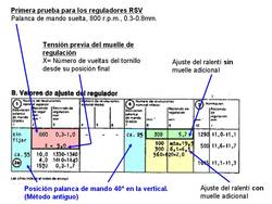 Estos ajustes no merecen ninguna indicación especial, ya que se trata de ajustar el valor indicado en la tabla de pruebas con el correspondiente tornillo de ajuste.