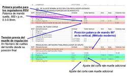 La correlación en la intervención de cada uno de los muelles desde cero hasta las máximas revoluciones, con la palanca de mando en el tope de máximas revoluciones, es la siguiente: