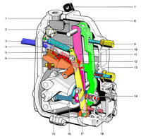 El regulador RSVEl regulador RSV es un regulador de toda velocidad, que como ya explicamos en la primera parte, son reguladores que regulan todo el margen de revoluciones del motor, desde que arranca hasta las revoluciones nominales o máximas del motor. Esto quiere decir que el control de la cremallera de la bomba de inyección está siempre controlada por el regulador. Como detalle característico, se puede decir, que en este grupo de reguladores, con la palanca de mando (acelerador) se ajustan las revoluciones a las que queremos que trabaje el motor. En los reguladores de mínima y máxima recordamos que, en la zona no regulada, con la palanca de mando se determina el caudal inyectado por la bomba. Adicionalmente el regulador RSV se caracteriza por permitir el ajuste de su estatismo o grado de irregularidad. El estatismo de un regulador se expresa en tanto por ciento e indica la sensibilidad de un regulador, o lo que es lo mismo, la rapidez con al que actúa ante una variación de revoluciones del motor. Cuanto mayor es el valor, menor es la sensibilidad del regulador. El RSV llega sin problemas hasta un 4%. Estas características han hecho de los reguladores RSV unos componentes imprescindibles en los equipos de inyección aplicados a todo tipo de maquinaria de obras, motores auxiliares y vehículos fuera de carretera, tal es así, que al día de hoy, después de más de 50 años de fabricación, todavía compite con sistemas de última generación como el mismo Common Rail. |
