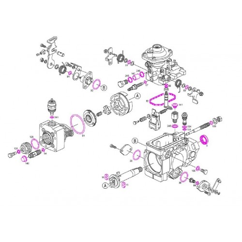 Juego de juntas bomba VE Bosch para motores atmoféricos.