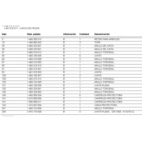 Equivalencias para JUEGO DE PIEZAS 1 467 010 517