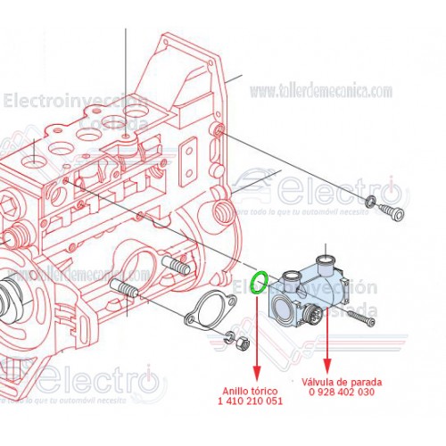 Válvula electrohidráulica de parada para sistemas de inyección diesel de Mercedes con bomba en línea y regulación electrónica.