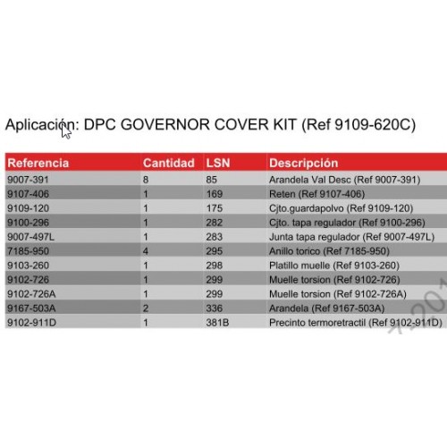 Aplicaciones para 9109-620C Kit Tapa de regulador bomba DPC y juego de juntas