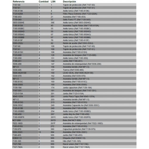 Equivalencias para Juego de juntas para bomba DPA 7135-114
